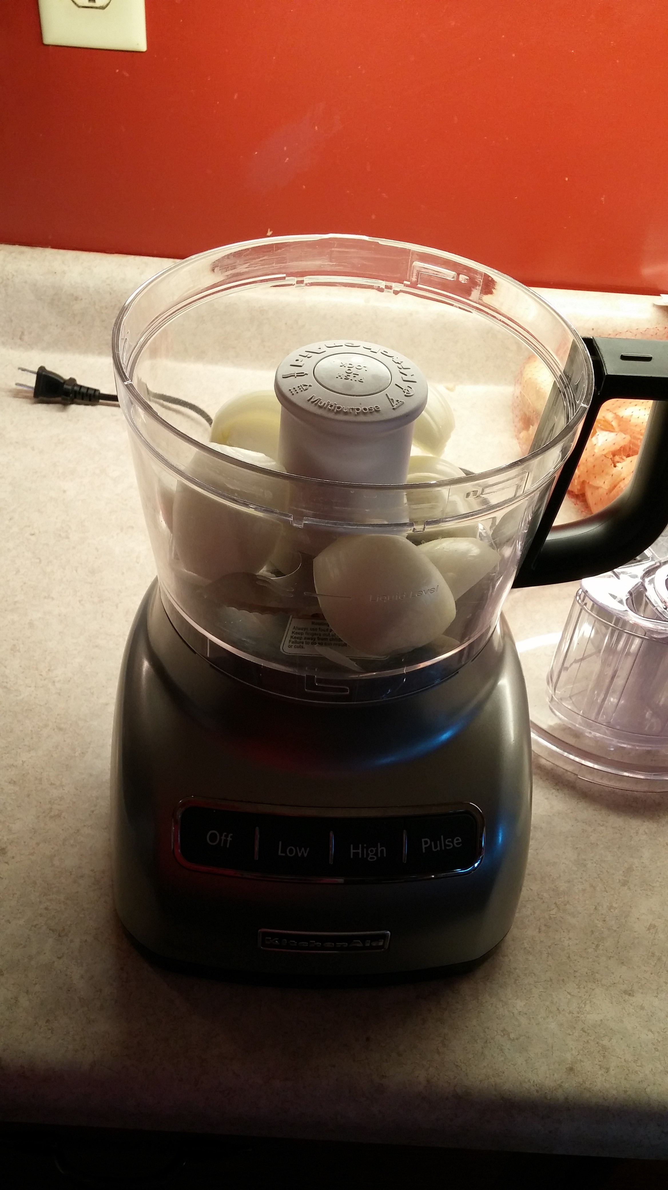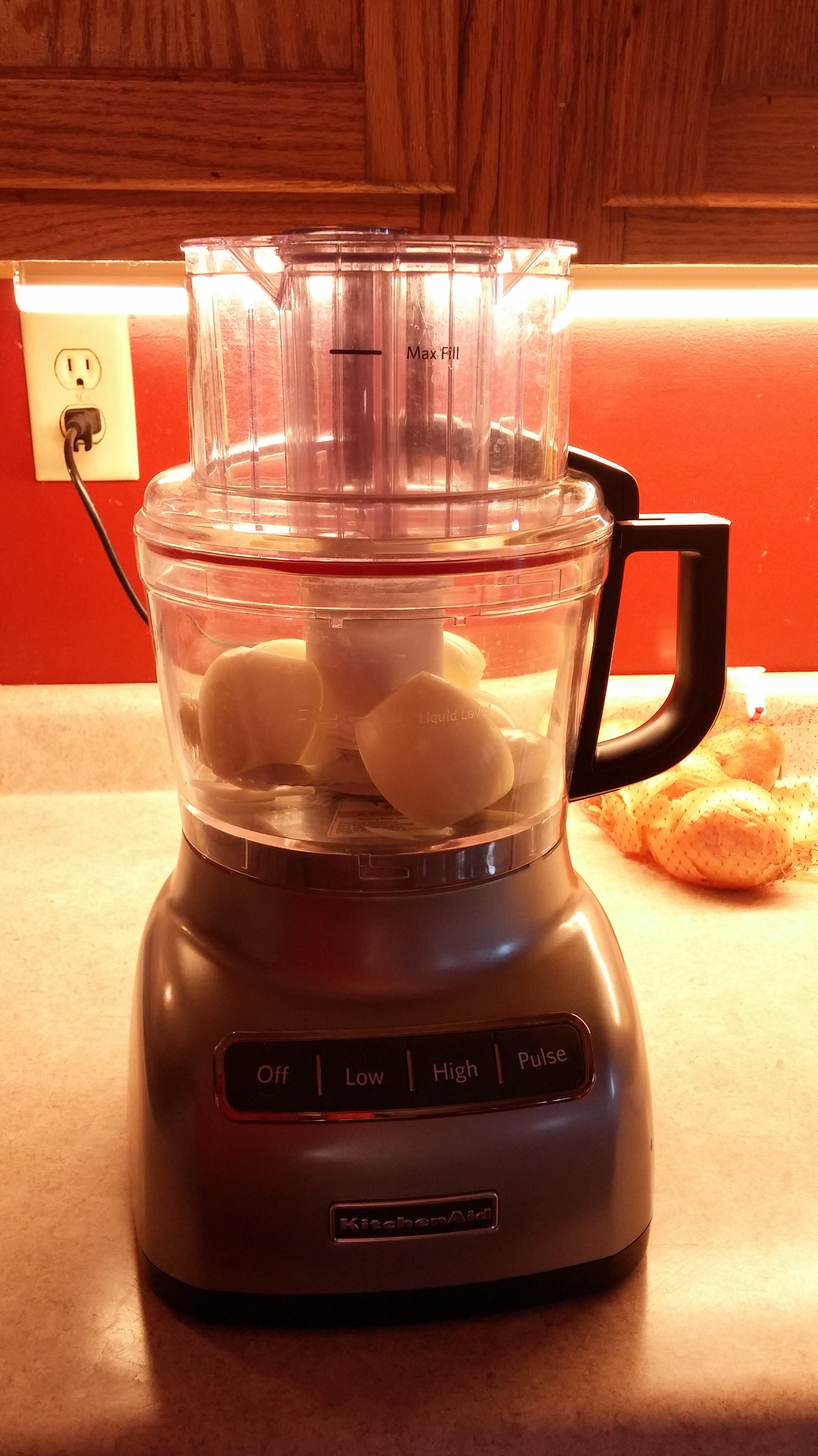 For my birthday this year, my husband got me a KitchenAid Food Processor. I have never had one before, so I really had no idea what was so great about them. As time goes on, I find myself finding more and more ways to use and enjoy my birthday gift. Below is how I use it to chop onions so I can freeze them for quick and easy food prep.